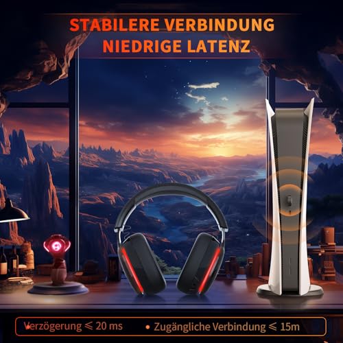 Stabiele verbinding en stereogeluid: de draadloze gaming-headset Captain 300 van Gvyugke combineert krachtige verliesvrije 2,4 GHz draadloze technologie voor een toegankelijke verbinding tot 15 m in een ongehinderde ruimte. Een lagere latentie (≤ 20 ms) en een 50 mm driver met 30% extra geluidseffect zorgen ervoor dat de draadloze gaming Hoofdtelefoon een hoogwaardige stereo oklang leveren, waardoor je de stem van richtingen, stappen en alle details in games duidelijk kunt waarnemen om een nog intensiever spel mogelijk te maken.