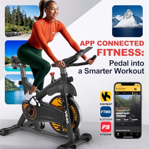 VOWVIT Hometrainer, fiets met magnetische weerstand: stille ergometer, hometrainer met lcd-monitor en smart bluetooth, indoor fitnessbike met verstelbare zitting, stabiel H-frame, tot 160 kg