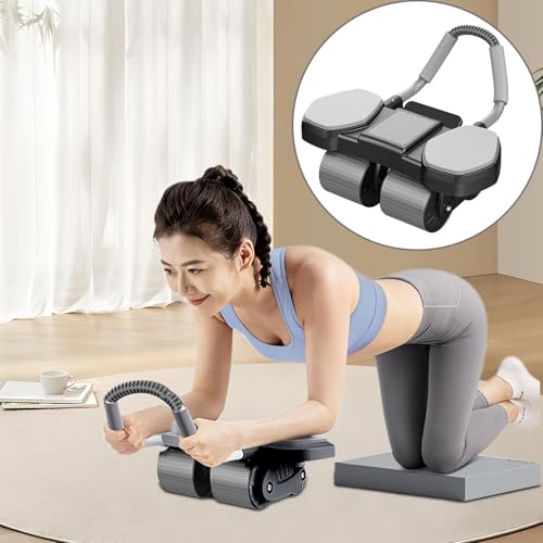 Ab Roller, Quiet Home Workout Trainer, Automatic Rebound Exercise Wheel, Four-Wheel Stability System, Compact Sturdy for Core Training in Room, Apartment, Garage, Gym