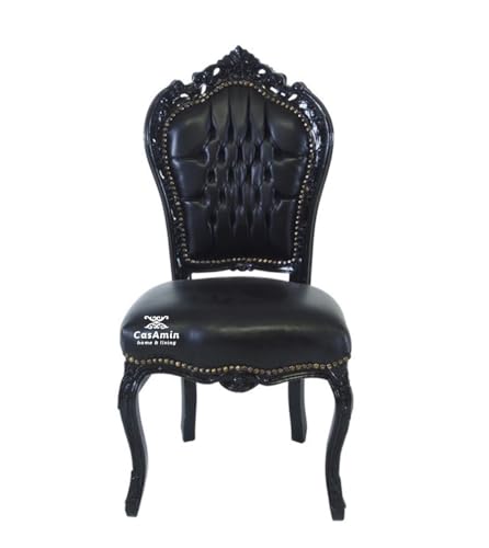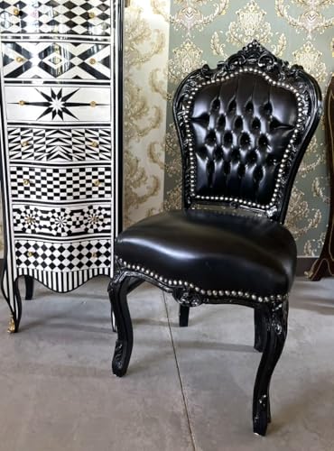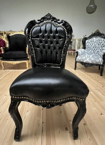 Plaats de eerste recensie voor “Accent Chair French Louis Baroque stijl eetkamerstoel in zwart lederachtig voor thuisdecoratie”
