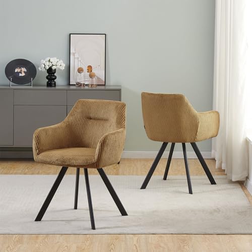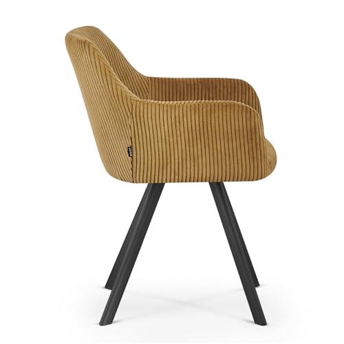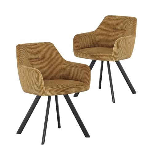 B&D home eetkamerstoelen CYRUS set van 2, Loungestoel Gestoffeerde stoel Fauteuil voor keuken, kantoor, eetkamer, woonkamer, modern industrieel ontwerp, Corduroy geel, 11117-GELB-2