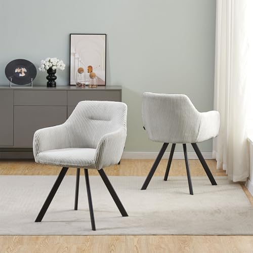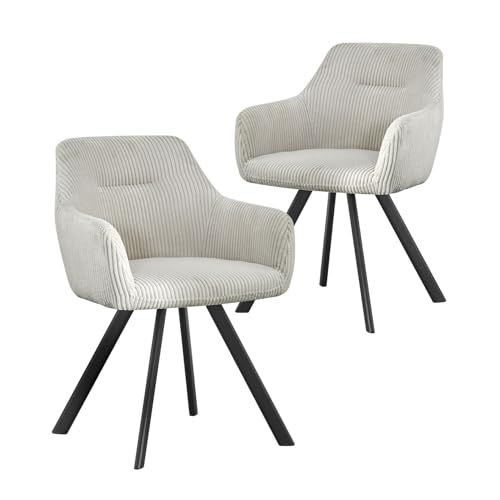 B&D home eetkamerstoelen CYRUS set van 2, Loungestoel Gestoffeerde stoel Fauteuil voor keuken, kantoor, eetkamer, woonkamer, modern industrieel ontwerp, Corduroy lichtgrijs, 11117-LIGR-2