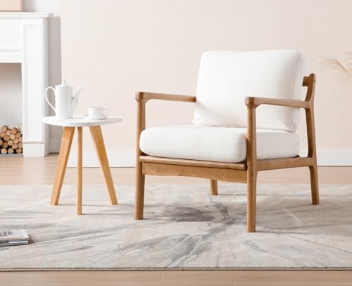 Plaats de eerste recensie voor “chairus Linnen kuipstoel voor woonkamer gestoffeerde fauteuil receptie stoelen met massief houten frame lounge accentstoel voor slaapkamer (beige)”