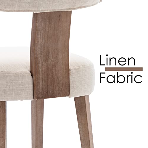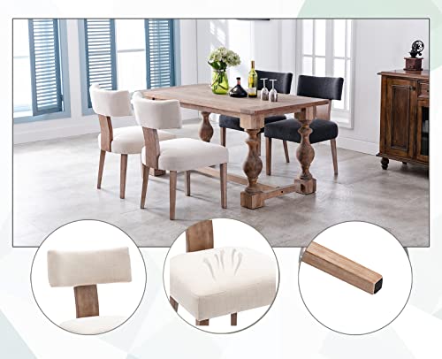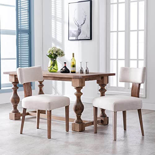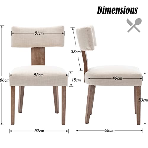 chairus Set van 2 stuks linnen eetkamerstoelen gestoffeerde keuken stoelen houten armleuningen zonder armleuningen voor woonkamer (beige)