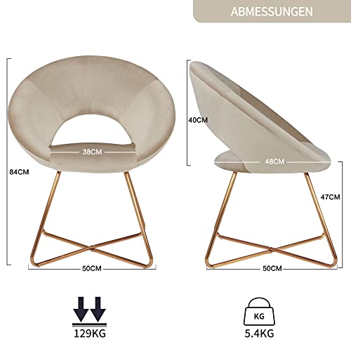 Duhome eetkamerstoel beklede stoel leunstoel fauteuil woonkamerstoel vooraanstaande design 439D, kleur:beige, materiaal:fluweel