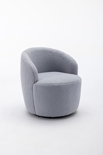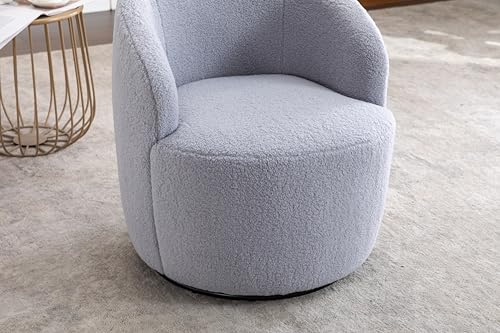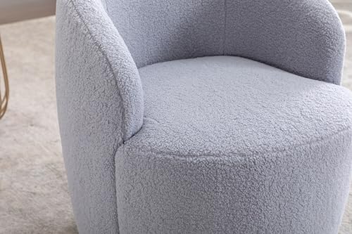 VSOGA Teddy Fabric Swivel Accent Armchair Barrel Stoel met Zwarte Poeder Coating Metalen Ring, Licht Grijs