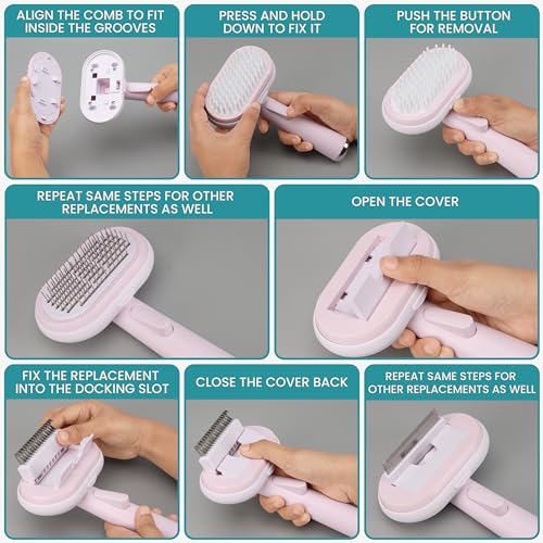 5-IN-1 PET GROOMING KIT: This professional 5-in-1 pet grooming kit is perfect for all of your small, medium and large pets; The set includes a 3-in-1 multifunctional brush with interchangeable heads and 2 combs; Use these tools to keep your dogs, cats, rabbits and other animals clean