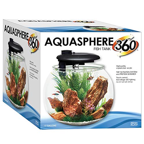 Penn-Plax AquaSphere 360 Large Bowl-Shaped Aquarium for Freshwater and Saltwater Setups – Fully Integrated Filtration System and LED Light Display – Durable Polycarbonate – 14 Gallons