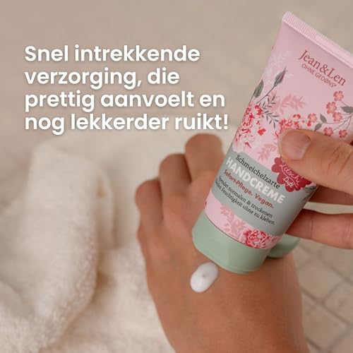 De Jean en Len handcrème pioenroos & lychee zorgt voor zijdezachte handen en biedt onmiddellijke verzorging voor droge handen – Met liefde gemaakt in Duitsland